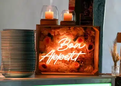 Auf Wunsch unterstützen wir Dich bei Planung, Dekoration und vermitteln DJs sowie weitere Dienstleister. Geschirr, Besteck, Gläser und Equipment kannst Du ebenfalls bequem über uns beziehen.
